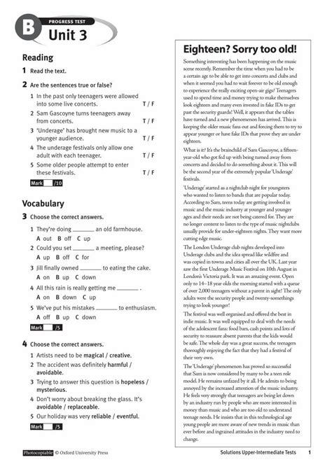 Solutions Upper Intermediate Test AnswersUpper Intermediate English Test SolutionsEnglish Language Exam AnswersIntermediate Level Test PrepESL Study Solutions
